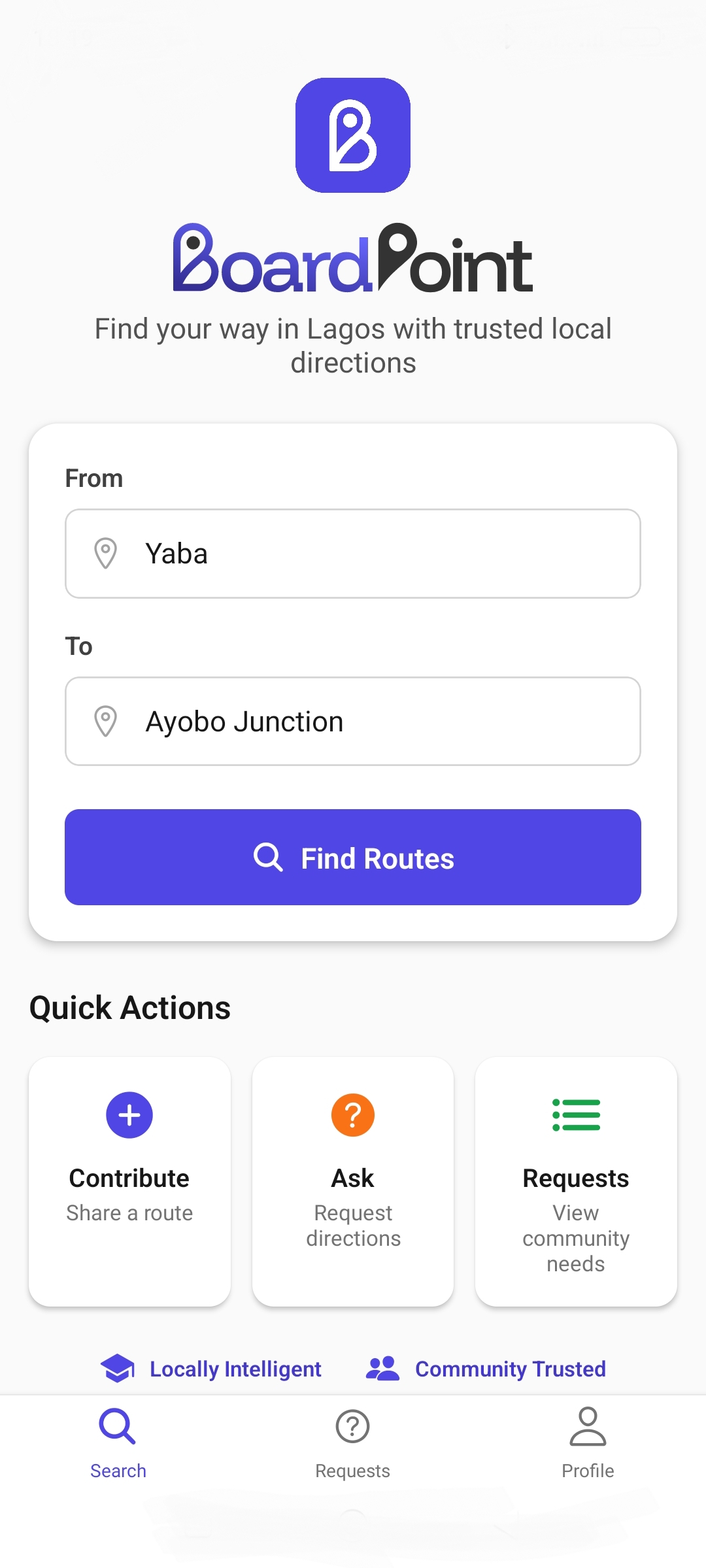Simply enter your starting point and destination. BoardPoint shows you all available routes, sorted by confidence and recency.